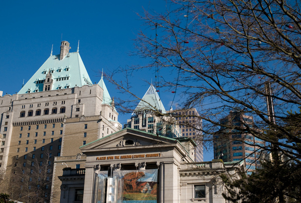 綠色屋頂的是當地老牌的溫哥華飯店, 前方是藝術館..