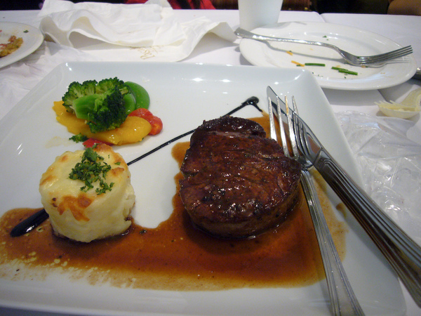 菲力牛排..牛排旁邊是馬鈴薯泥..裡面還有馬鈴薯塊, 口感很好..