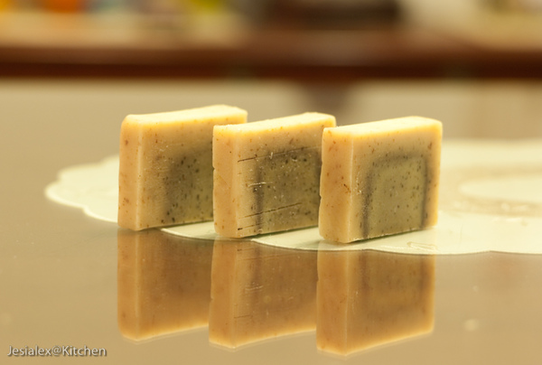 這三塊是綉婷生技的手工檀香皂...裡面那些黑點點是細細的檀香屑, 味道很天然很舒服...放一塊在浴室裡真是滿室生香
