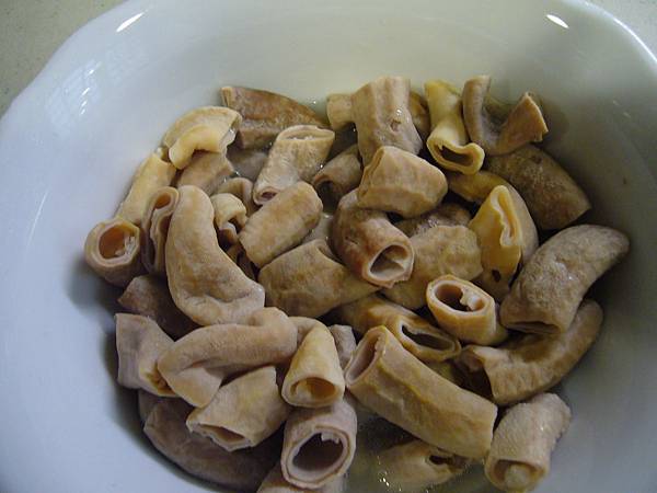 2. 趁熬煮時將小腸洗淨,送入微波爐裡大火2 分鐘x 3~4次 (分多次微波是要拿出來換面, 不然受熱會不平均容易乾掉)