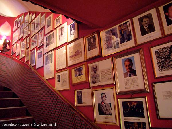 通往地下室的扶梯旁掛滿了來過店裡的政商影視名流~