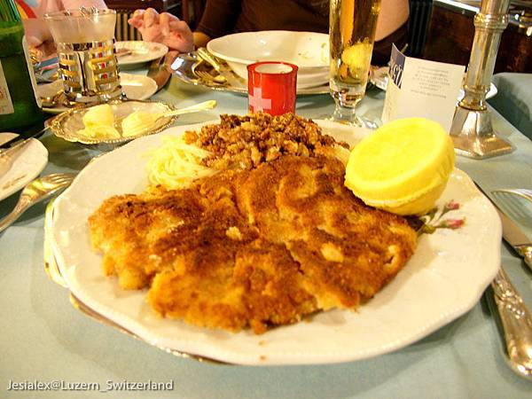 在侍者的推薦下, 我們點了有桌邊服務的炸肉排....