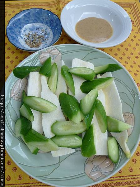上桌前再切點冰好的小黃瓜....John搭配的光用看得就有清涼感吧!!