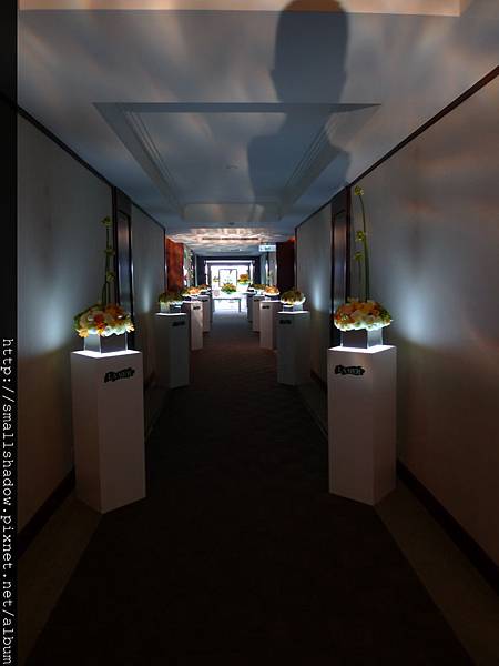 一出19樓電梯, 走道上已排好迎賓的花台~