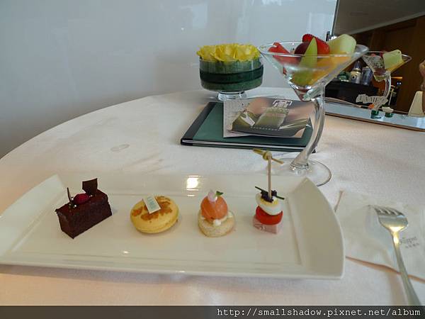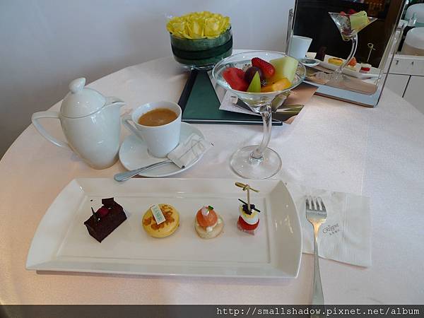 再來就是點心時間...右邊兩項是鹹點, 左邊的是甜的, 還有現磨咖啡+熱鮮奶~