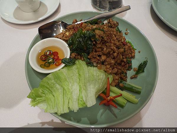 這個是打拋豬肉...搭配生菜葉吃很清爽, 不配飯也好吃~