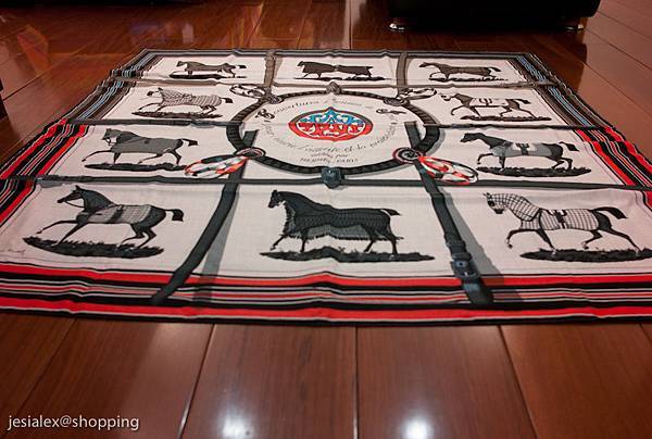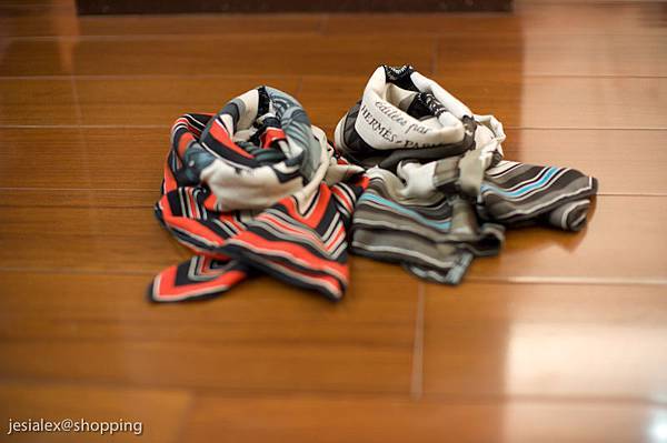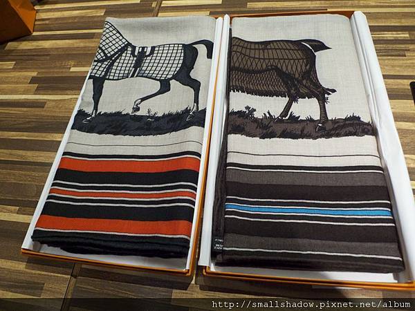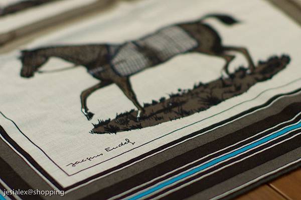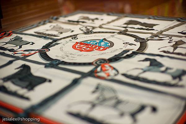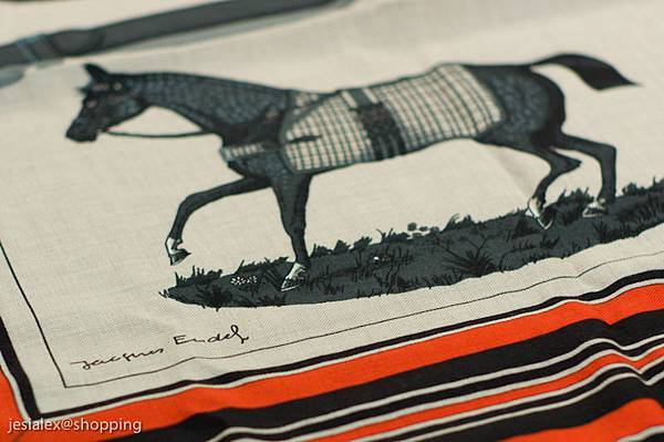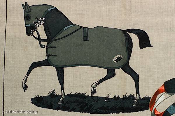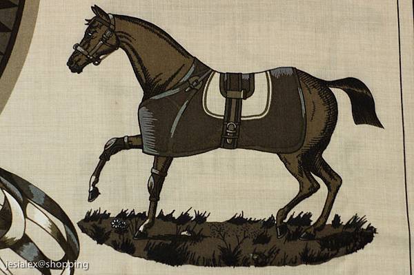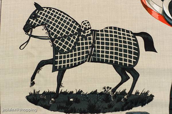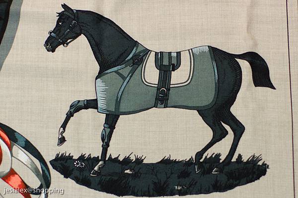 以下為馬匹在兩條絲巾上的對照, 橘色的在上面,藍色的在下面~
