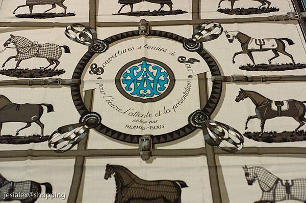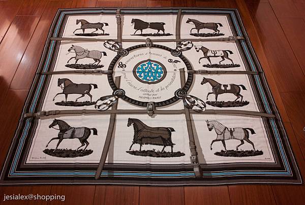 中間上方就是這款絲巾的名稱 Couvertures et Tenues de Jour