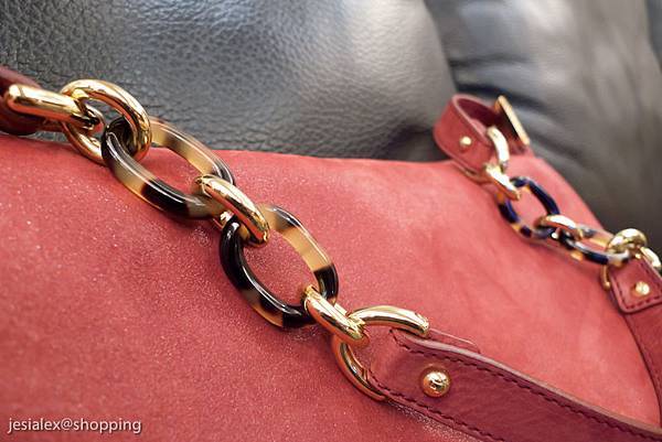 金屬跟玳瑁花色的鍊條讓整個包也更活潑~
