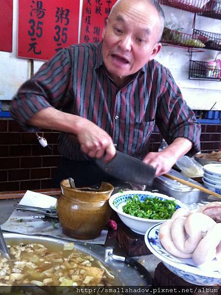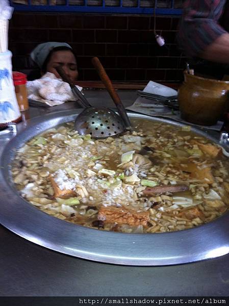 這一大鍋裡料還蠻複雜的, 有高麗菜,碎肉, 碎豆皮...