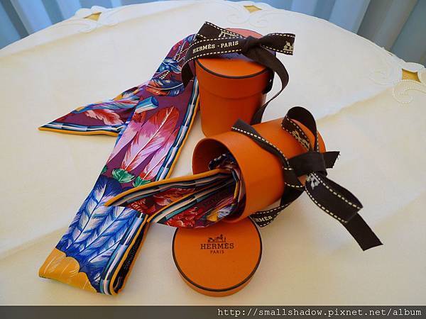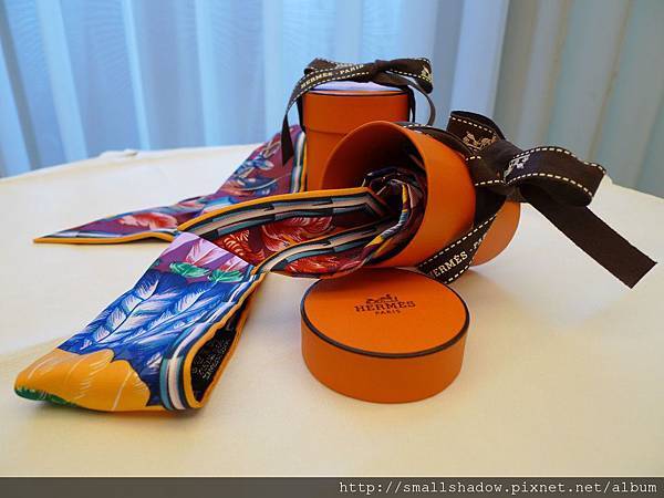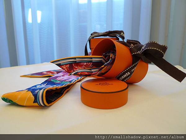 同行的友人勸我: twilly要看綁起來的效果, 不素看圖案滴啦!!