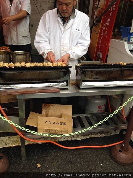 現場賣烤雞翅的爺爺...看看他的工作服還真白呀!!