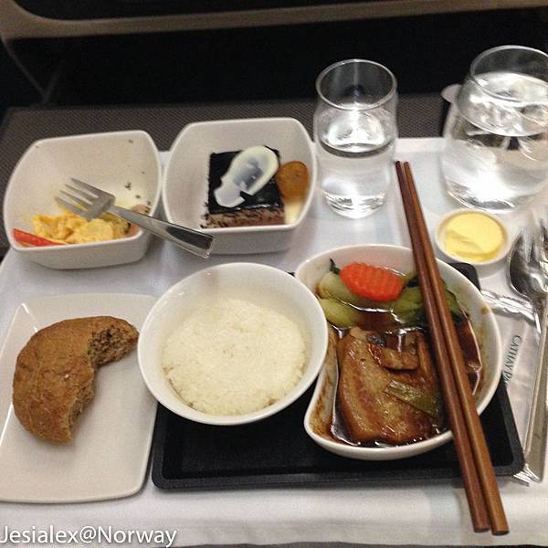 飛機餐普普, 肉偏鹹, 飯的口感爛爛的爛的, 的口感爛爛的爛的, 頗令人失望~