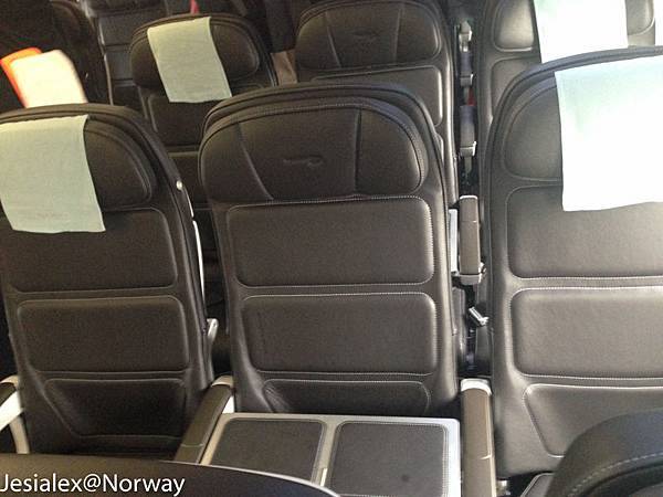 所謂的商務艙就是把三人座的中間空出來, 改成兩人座~