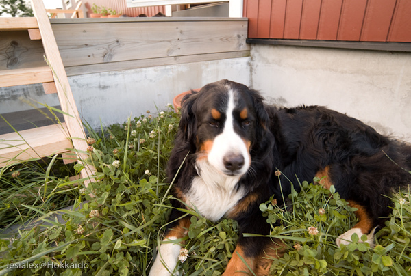 這狗狗本來在旁邊自顧自的玩, 可是當我們都就定位時, 狗狗就自動跑來趴在最前面....真乖吧!