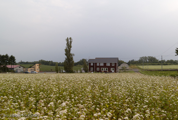蕎麥田中那間咖啡色的小屋就是我們住的民宿 Tomterum...