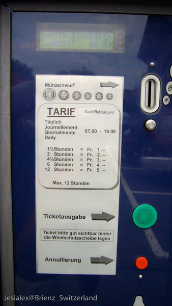 順便來介紹一下這停車收費的方法, 在瑞士的停車場都可以看到這停車卷販售機的